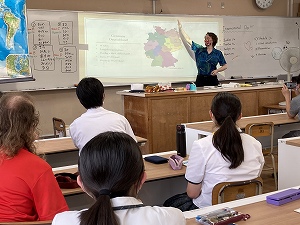 ドイツの国旗の色は、黒・赤と、黄色ではなく金色なのだそうです。言語はもとより、祭りや食べ物や教育制度など、意外と知らないことばかりでした。ドイツ語、英語、フランス語、デンマーク語を操るキャサリンさんから、「間違いを恐れずに、言語を使ってみてください。周りのみんなが助けてくれるから。」というメッセージをもらいました。