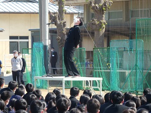 従来は体育館で行っていましたが、今年はグラウンドで行われました。